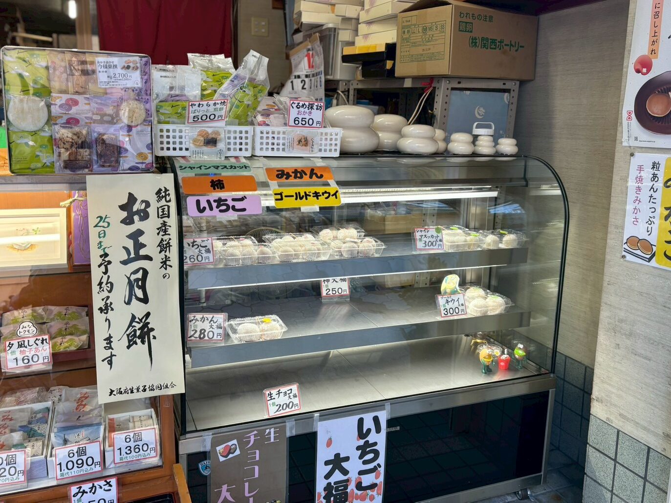 最初はいちご大福から始まった。東京で始まったいちご大福が関西にも入ってきて、平成の初めくらいから作り始めた。他のフルーツ大福は最近のことで、きっかけはお客さんの声から。パイナップルとあんこが合うことだけは知ってたから、初めはパイナップルからスタートしたね。徐々に増えていって今の種類がある。