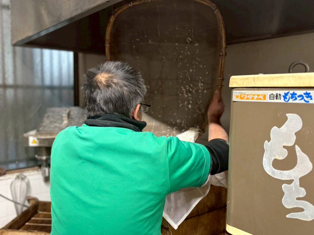 昭和40年に父から始まった。俺は後継や。子供の頃から和菓子に触れてきて、食べたいものを食べて、手伝いたいこと手伝っていた。小学三年生の頃から年末はおもちで。今60歳やから9歳からの50年間くらいは年末遊びに行ったことがない。今は甥や姪、俺らにとっても年末の楽しみになって、染み付いているものや。